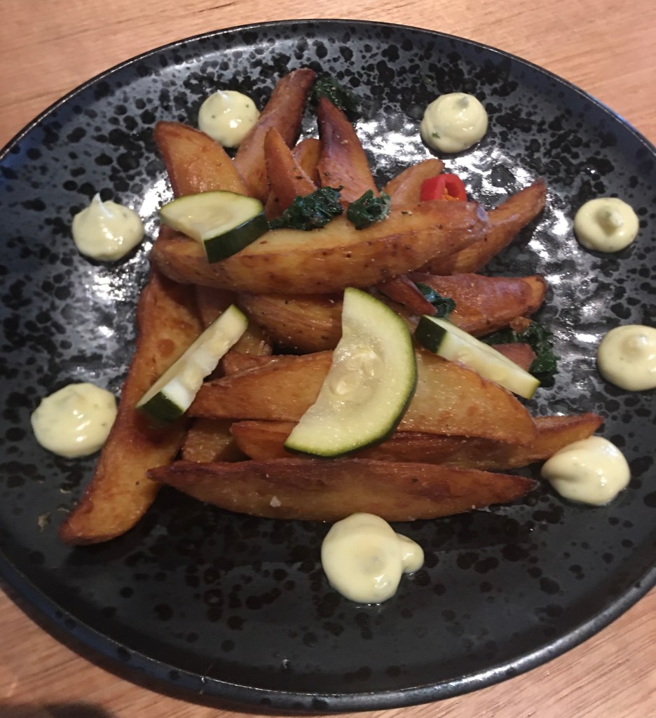 POTATO WEDGES (crispTassie potato served with garlic parsley mayo, pickled vegetable)