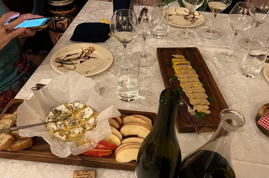 WARMED CAMEMBERT w crusty bread and fresh apple slices / DUCK FOIE GRAS