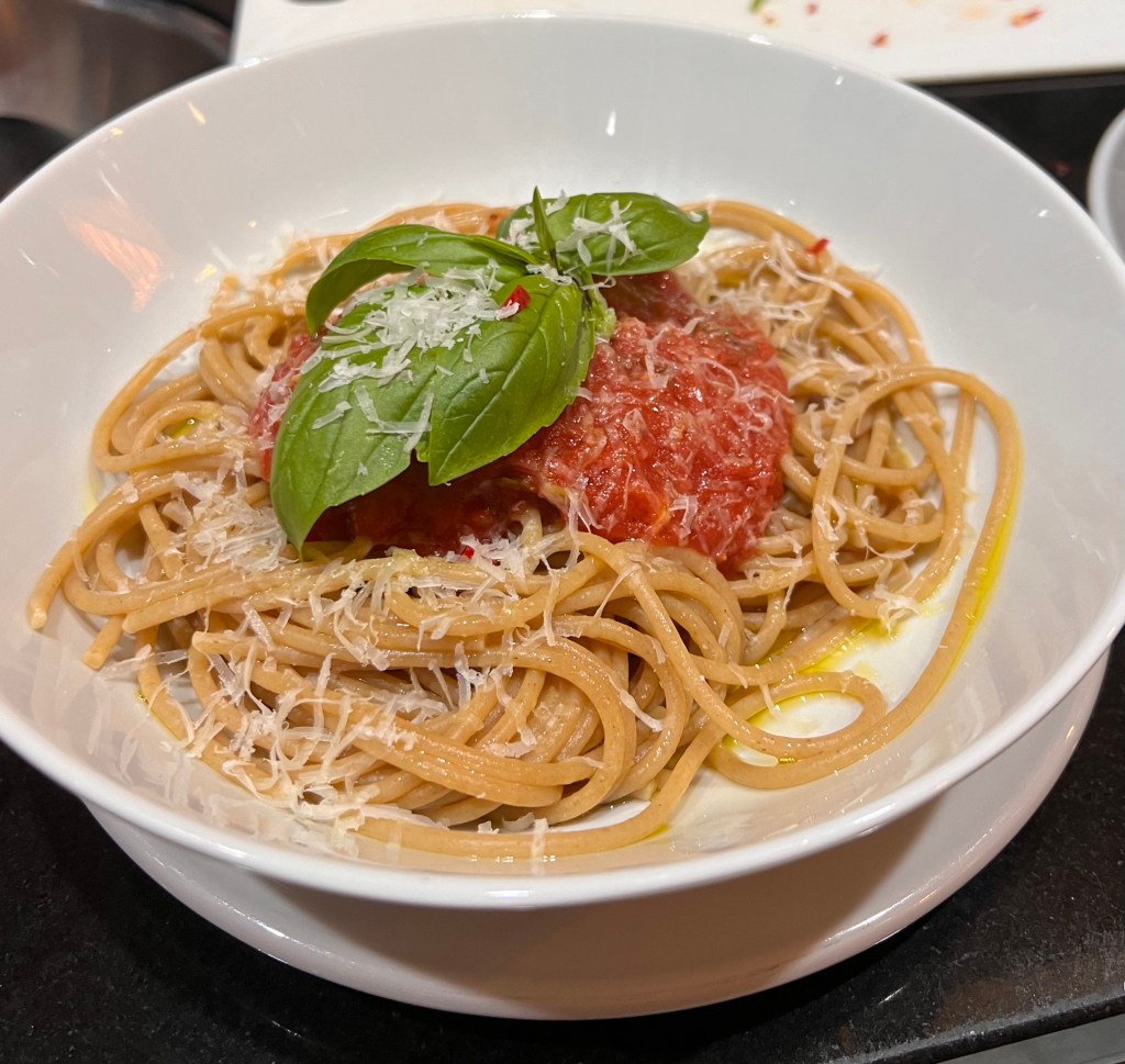 I served it with a basic pasta sauce of Italian tomatoes, garlic, oregano, basil, pepper and chillies and parmigiano reggiano cheese.