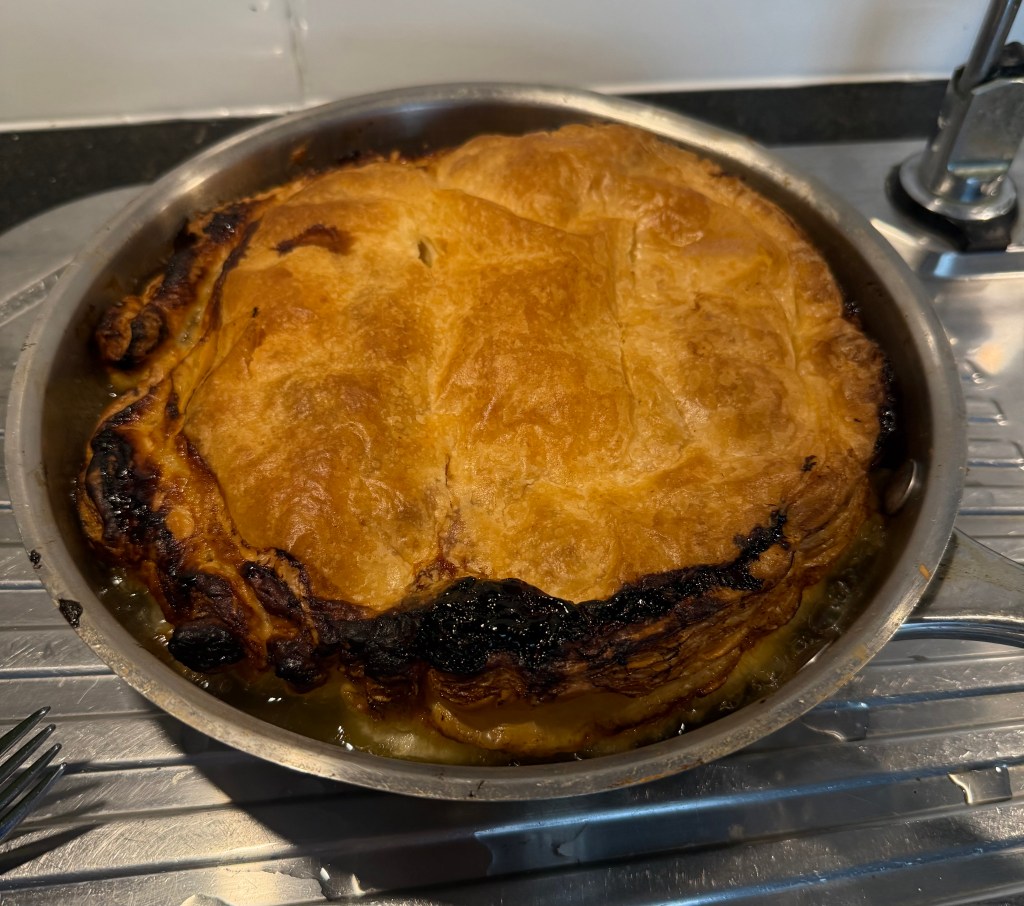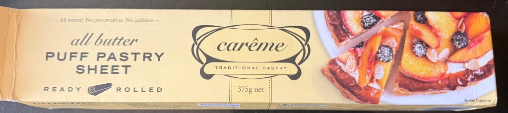 Added a sheet ofCareme all butter puff pastry, tucking it into the sides of the pan,