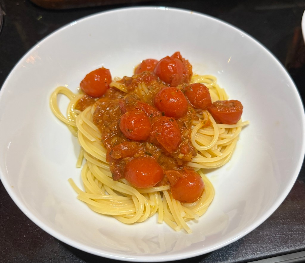 As the sauce takes 17m to cook in the Thermomix, and the Barilla Spaghetti takes 10m plus the time to bring the pot to the boil, you should start both at the same time.