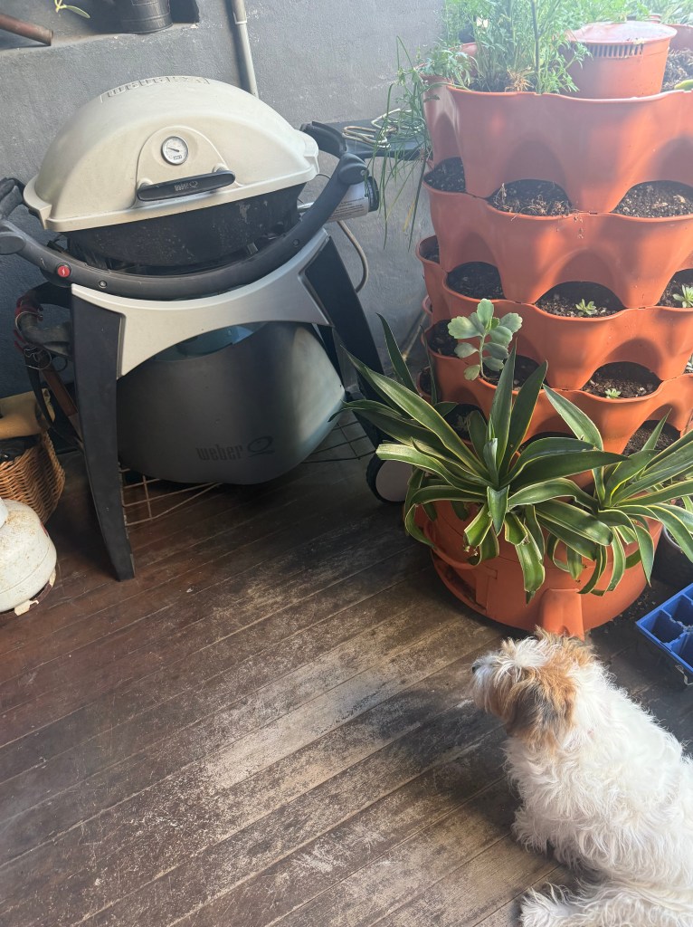 I tried to do this in the Weber Q, but maintaining the constant temperature and cooking the top, even with the lid down, did not work, so I finished it up under the oven grill (probably too long, but I needed to get the top slices cooked), but the end result was still delicious.