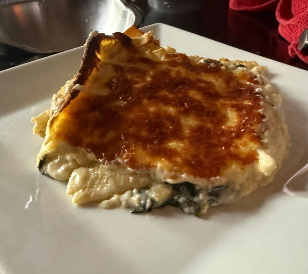I also substituted fresh lasagna for the dry lasagna noodles, again probably a mistake as the pasta was overcooked (fell apart).