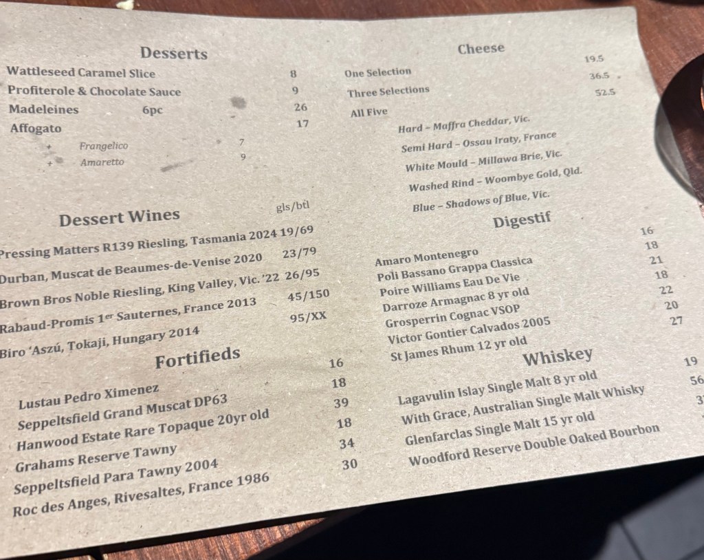 Three Cheeses: Hard (Maffra Cheddar, Vic), White Mould (Millawa Brie, Vic), Blue (Shaddows of Blue, Vic)