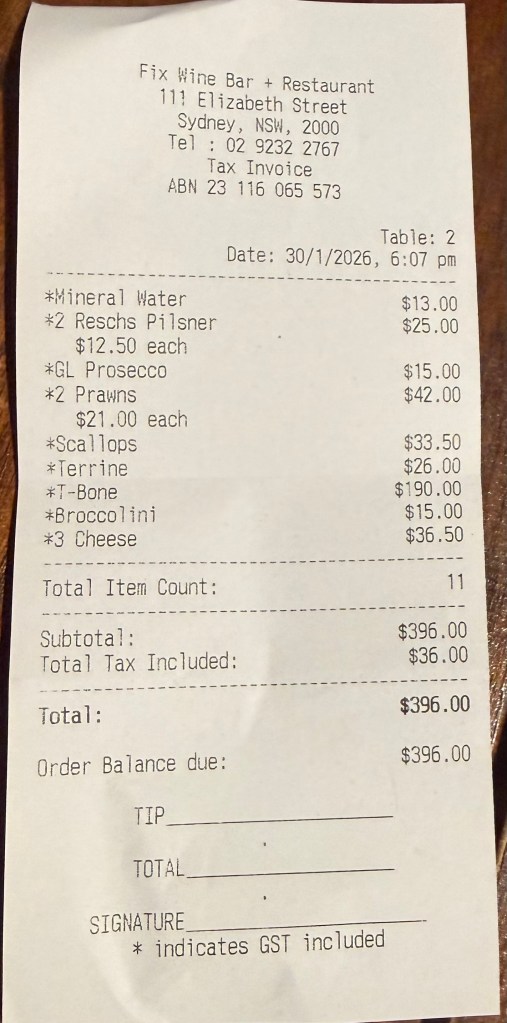 Overall very good. Probably would not order the T-Bone again as it was a little on the chewy side, but was a good match for the Californian Cabernets.