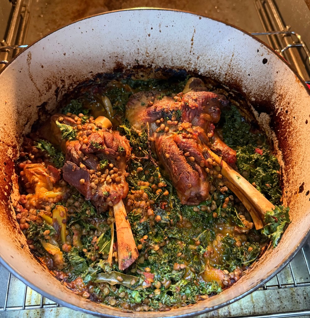 The suggestion of adding harissa to the leek mixture, I will try next time, but this is up there with the best of the lamb shank recipes I have cooked or eaten.