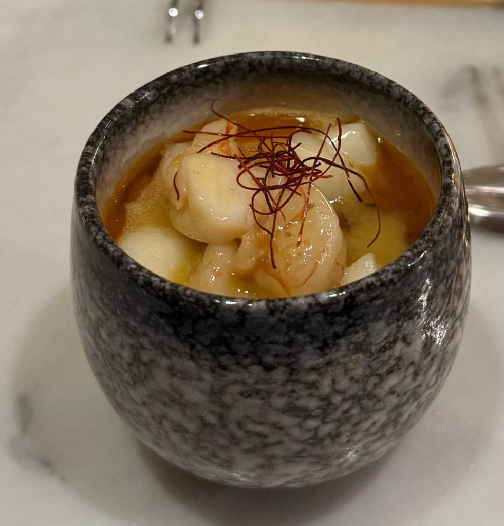 Scallops … Japanese custard … shredded chilli
