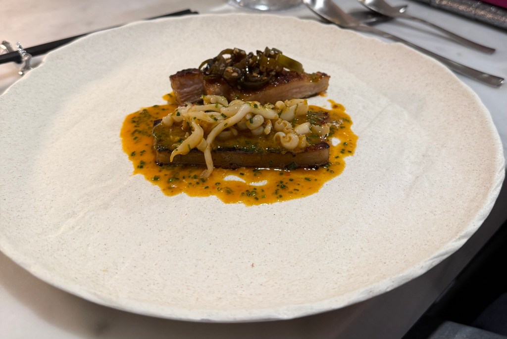 Pork Belly with chilli cuttlefish & pork jowl with pickles