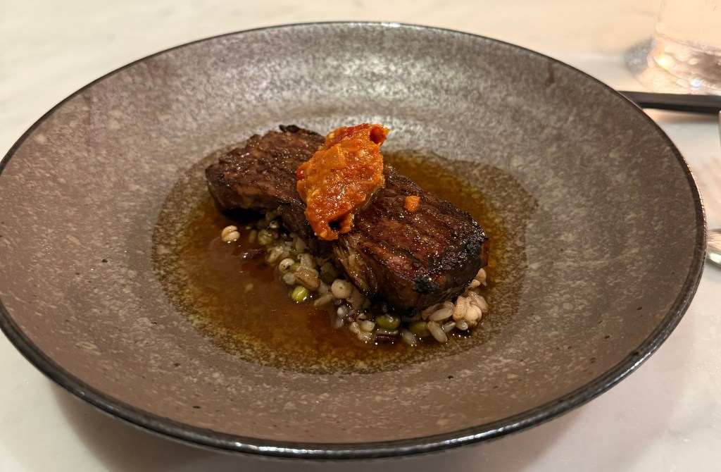 Sher wagyu short rib, eight treasure grains, smoked tomato relish