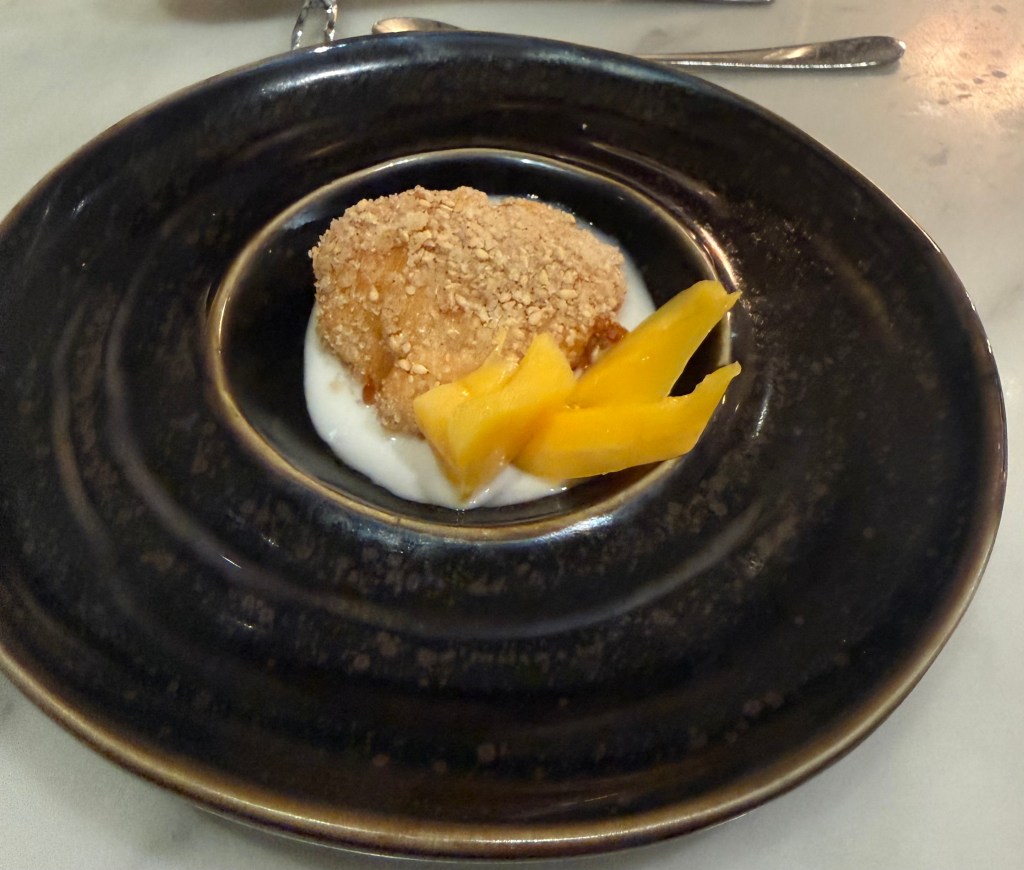 Pre dessert: Coconut fritters with sweet coconut cream, jackfruit
