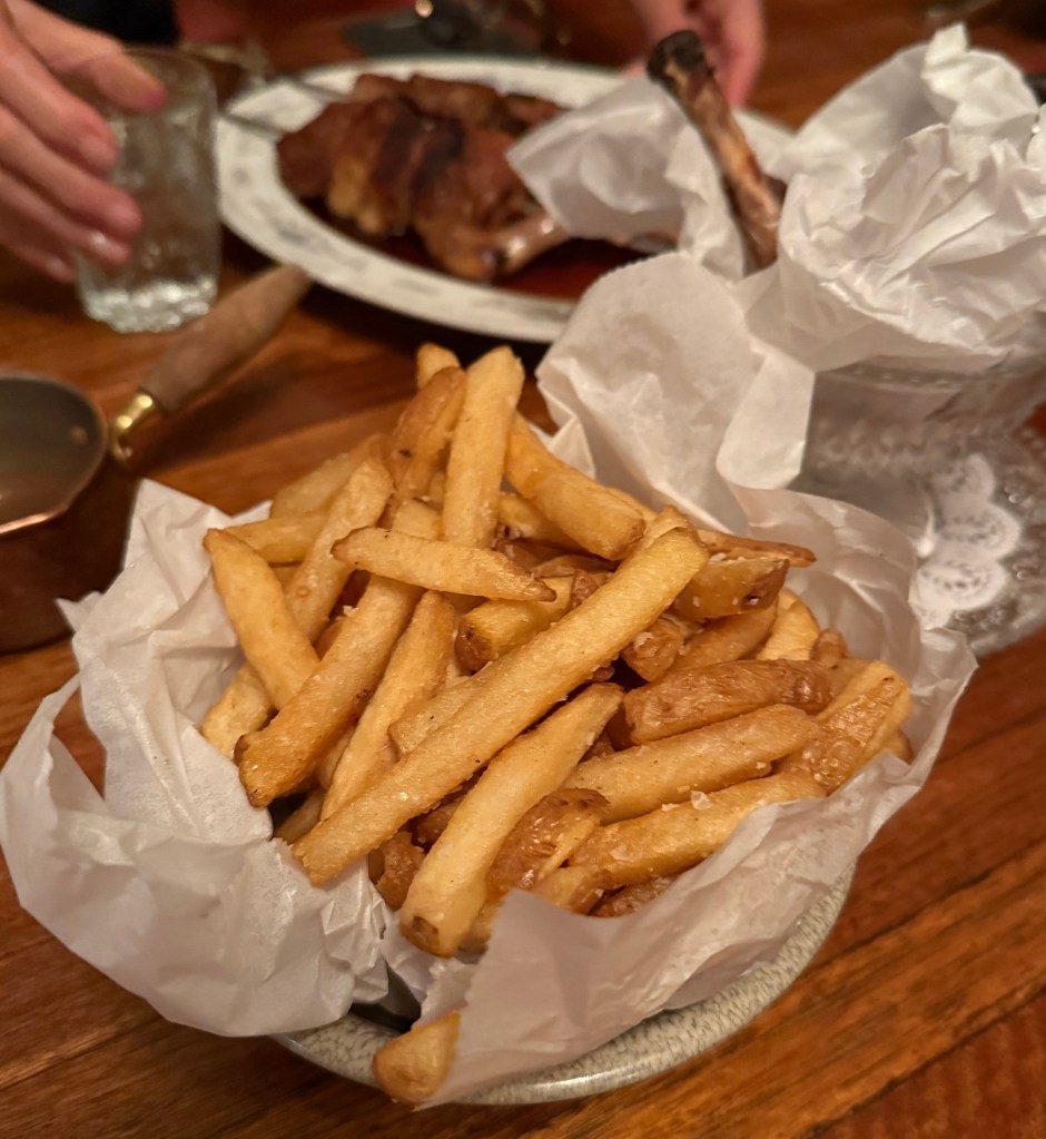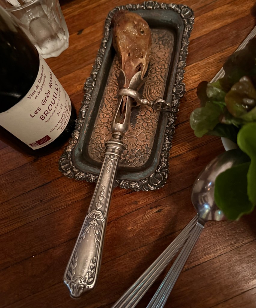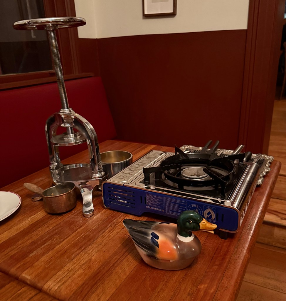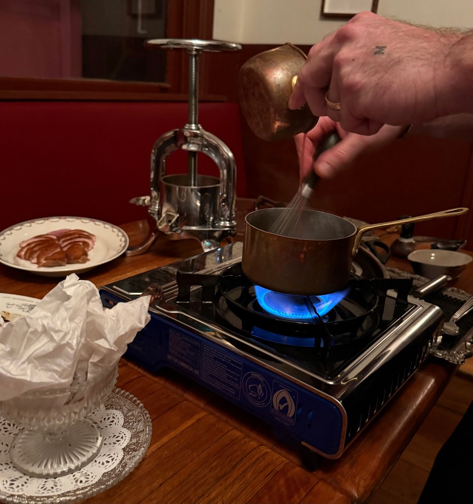 The sauce being made with the juice of the duck bones. (Madeira rather than Cognac). The Maderia (IMHO was too sweet)