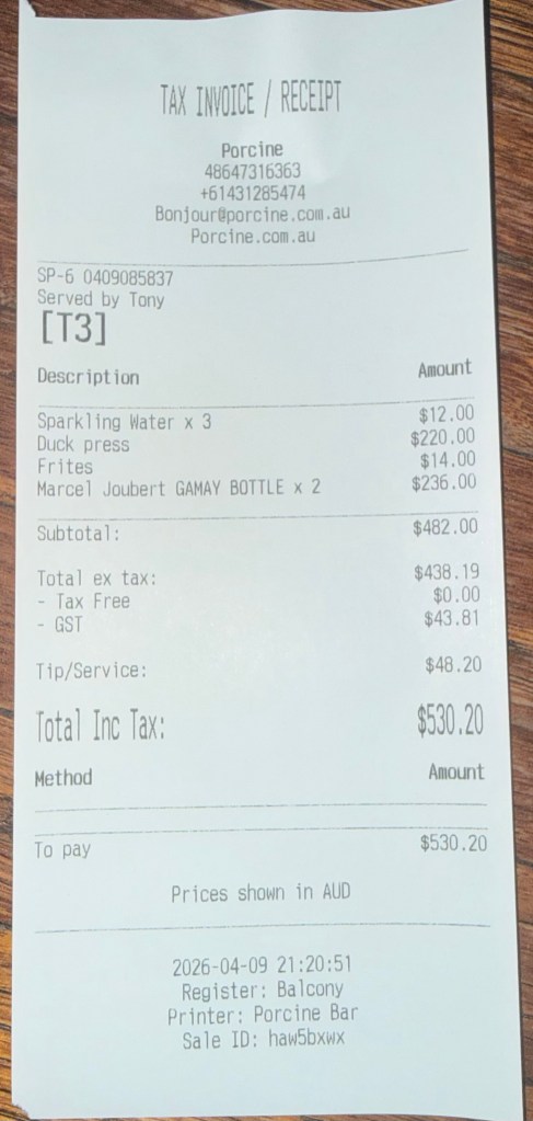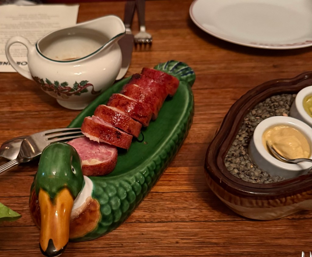 Whilst the presentation was very good, the duck was mediocre (tough and lacking in flavour). The best bit was the sausage. Also my female companions hated the staff’s music choice (techno mostly) and the volume.