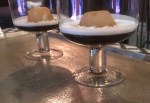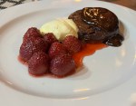 - Double-baked chocolate souffles with baked strawberries and chocolate sauce
