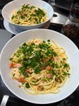 - Lemon pasta with peas and prawns